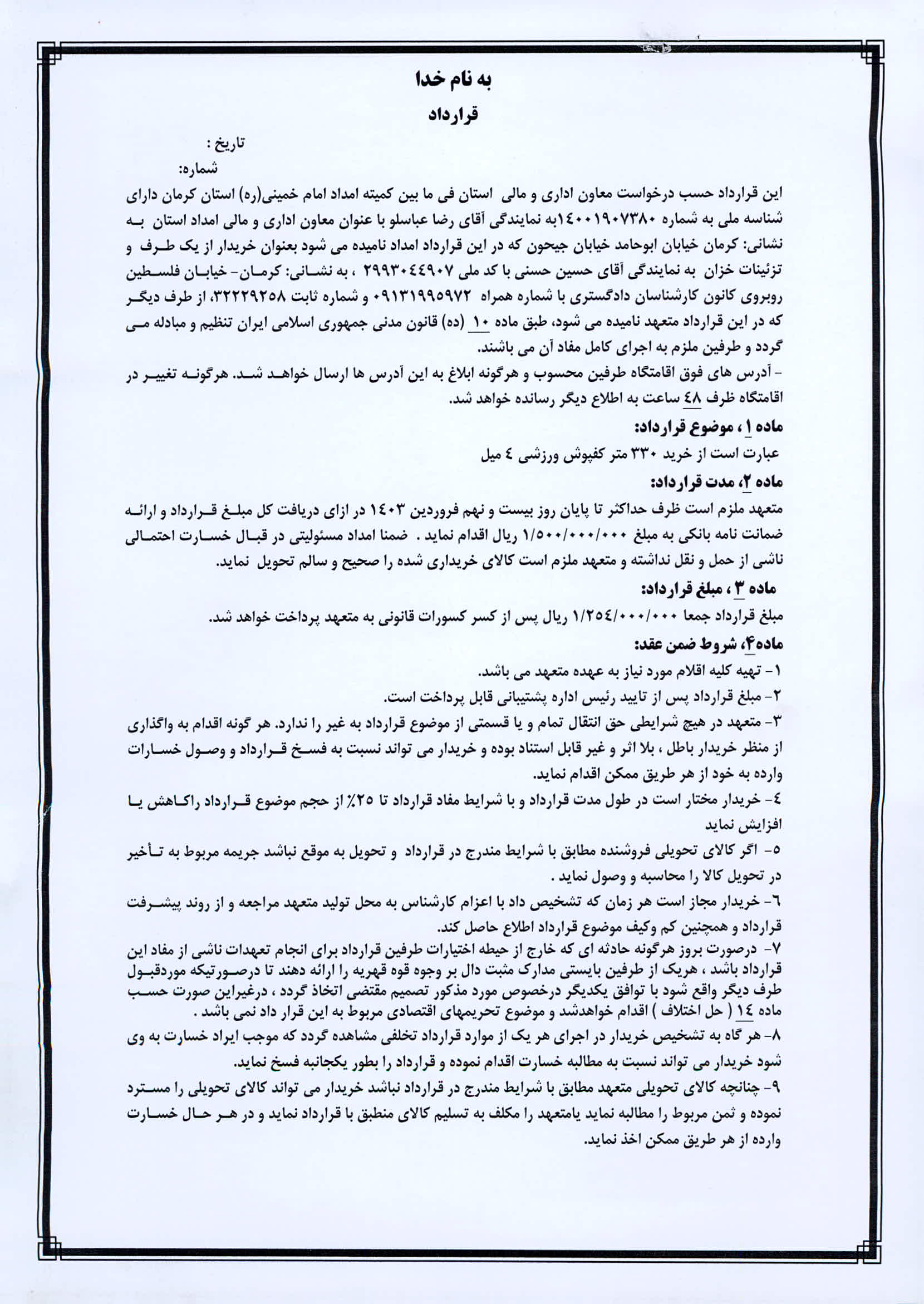 کد : 68118 آخرین به روزرسانی : 6 اردیبهشت 1403 - 08:13 دسته بندی جزئیات مرتبط با قراردادها پیوستها پیوست حجم کفپوش ورزشی (1).jpg 258.35 کیلوبایت کفپوش ورزشی (2).jpg 187.27 کیلوبایت دسته بندی جزئیات مرتبط با قراردادها