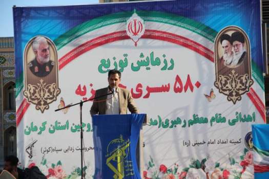 به گزارش پایگاه اطلاع رسانی کمیته امداد، ناصر عسکری نژاد، مدیر کل کمیته امداد استان کرمان در حاشیه این رزمایش که با حضور سردار حزنی فرمانده قرارگاه محرومیت زدایی سپاه پاسداران، سردار بابا احمدي رئیس سازمان بسیج مساجد و محلات کشور، بیگ زاده معاون توسعه مدیریت و منابع استانداری کرمان و جمعی از مسئولان استان در مصلی امام علی کرمان برگزار شد گفت: این 580 سری جهیزیه شامل پنج قلم کالای اساسی به ارزش هر سری 35 میلیون تومان تهیه و در راستای ازدواج آسان به زوج های نیازمند تحت حمایت کمیته امداد استان کرمان اهداء می شود.